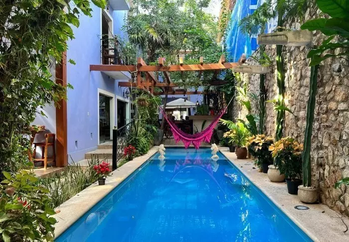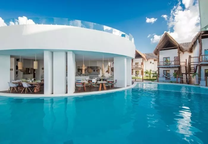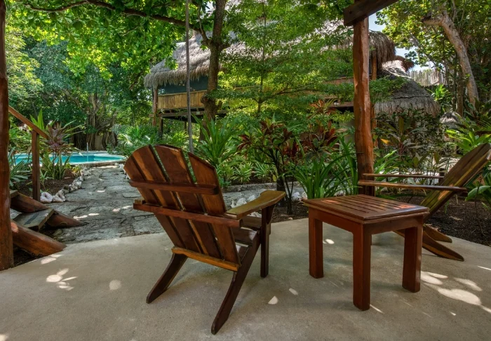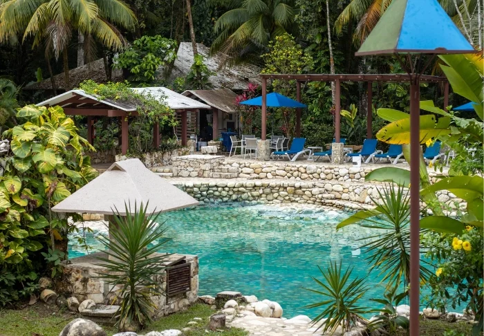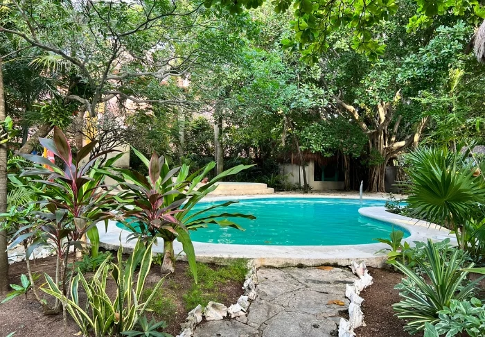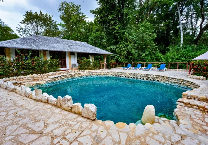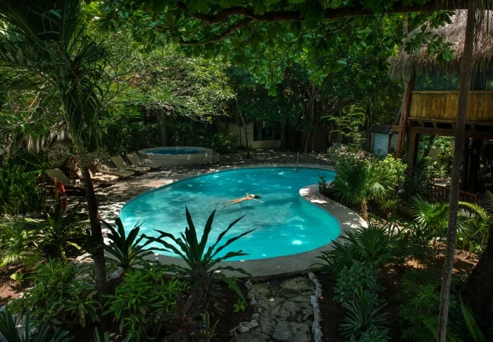 Ta et forfriskende dykk i bassenget som minner om en naturlig cenote, eller nyt en kjølig drink på en solseng under solens stråler.