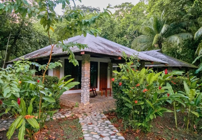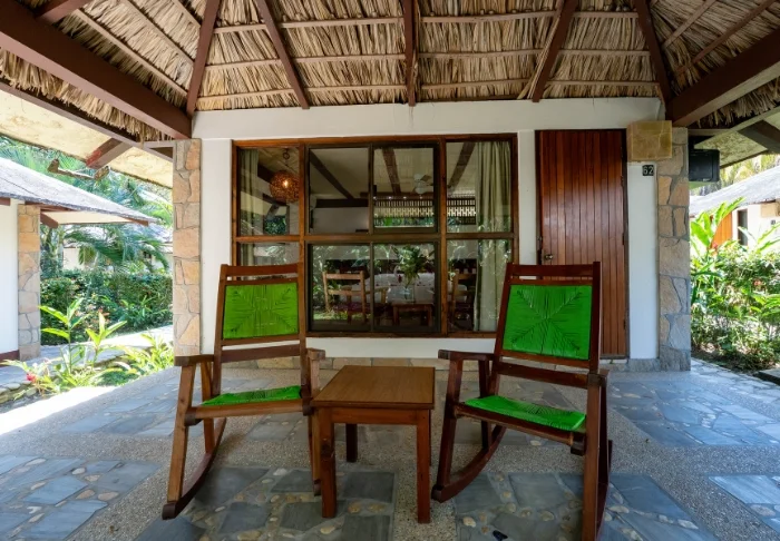 Rommene er spredt ut i den frodige hagen, og de mange trærne gir både nydelig skygge fra solen og bidrar til en ekstra naturopplevelse, siden vakre eksotiske fugler kommer på besøk. Du kan også være heldig nok til å få øye på en lat øgle eller iguana som kryper ned fra et tre.