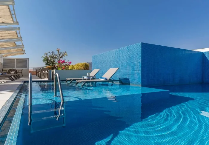 Etter en lang dag med sightseeing, kan du se frem til en forfriskende dukkert i bassenget på takterrassen.