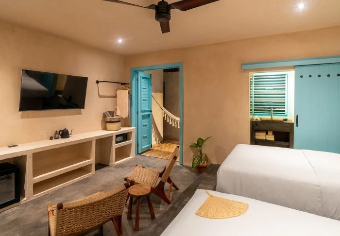 Hotellet har 33 rom, som alle er innredet i lyse farger i rustikk mexicansk stil med tremøbler og dekorative detaljer som gir stedet en avslappet og hjemmekoselig atmosfære.