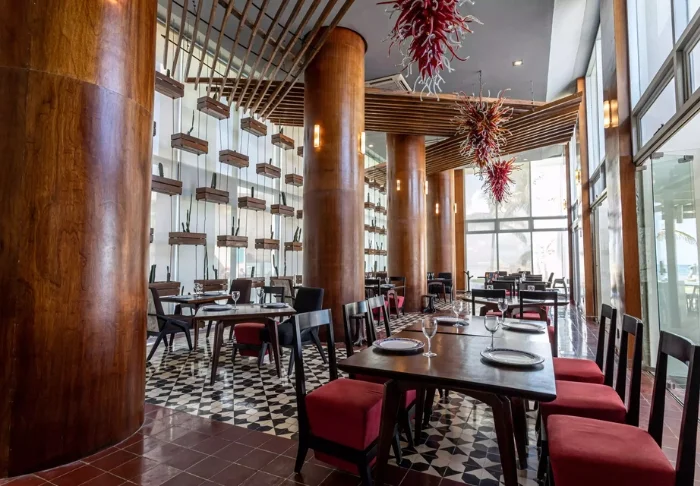 På hotellets restaurant, Adhara Grill, serveres det både internasjonale og mexicanske retter.