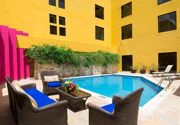 Ta et forfriskende bad i det lille bassenget, eller slapp av på en solseng og la tankene vandre over dagens opplevelser. Frokosten serveres i hotellets restaurant, og rett utenfor finner du et stort utvalg av kafeer og restauranter hvor du kan smake spennende meksikanske spesialiteter.