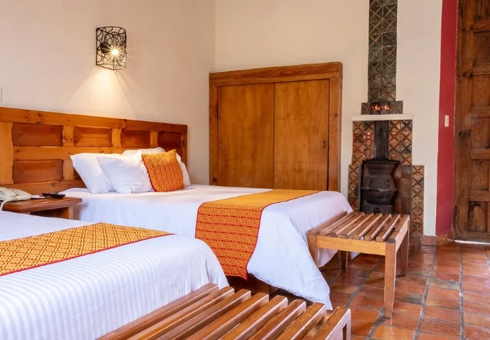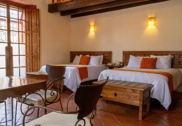Det er totalt 78 rom, alle innredet med varme farger og klassiske meksikanske tremøbler som gir en koselig og autentisk opplevelse. Rommene har også safe, kabel-TV, wifi og eget bad med hårføner.