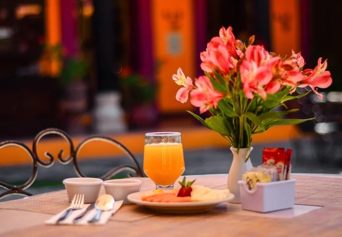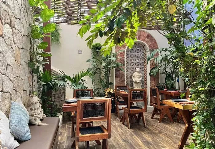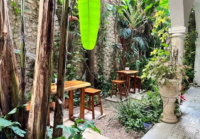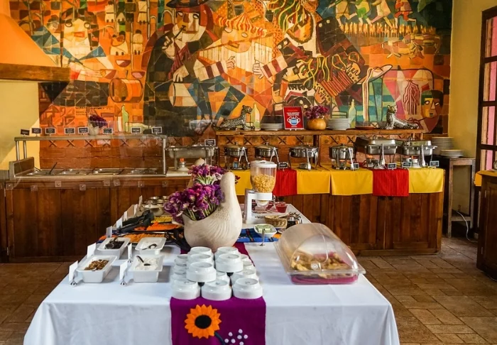 Frokosten serveres i den sjarmerende gårdsplassen, og i de omkringliggende gatene finner du et mangfold av spiseplasser, hvor du kan prøve ulike tradisjonelle meksikanske retter.