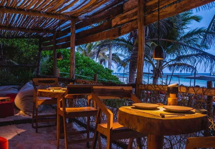 Hotellet har en strandbar der du kan nyte kalde drikkevarer eller snacks og sin egen mexicanske open-air-restaurant, der du sitter med føttene i sanden og utsikt over havet. Her serveres din inkluderte frokost, og senere på dagen er det lunsjretter på menyen. I høysesongen serverer restauranten også middag. Som gjest kan du også spise middag på en av restaurantene i nærheten. De har både fisk og skalldyr, mexicanske- og internasjonale retter på menyen. Du kan også dra inn til Tulum by hvis du vil ha et større utvalg restauranter og barer.