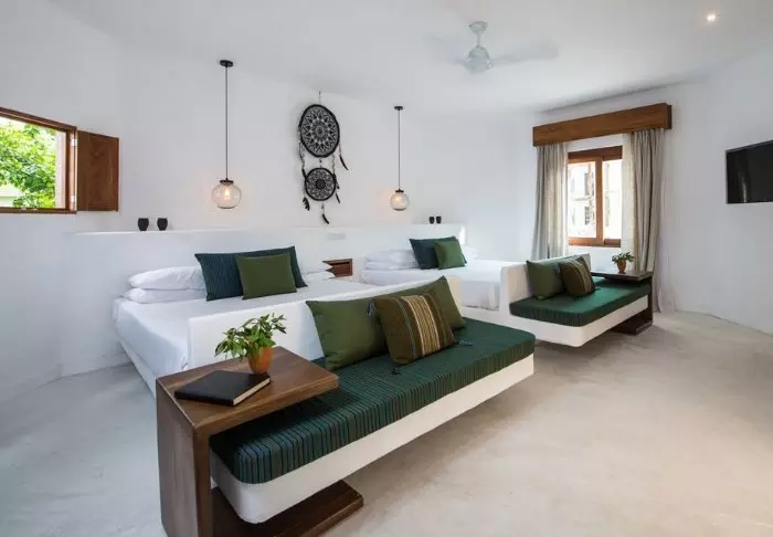 Dette intime tilfluktsstedet har rom med fine innredningsdetaljer, og alle rom har aircondition, takvifte, Wi-Fi og safe. Hotellet har bare 9 rom, alle med egen terrasse. Her kan du falle i søvn til lyden av bølgenes behagelige lyder. Når du våkner, kan du legge deg ut i hengekøyen mens du følger med på hvordan solen stille dukker opp i horisonten og maler himmelen i klare, lysende farger.