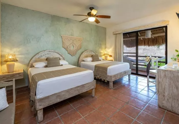 Rommene på hotellet er innredet i meksikansk stil med naturlige materialer og livlige farger. Alle rom har aircondition, takvifte, sikkerhetsboks og sin egen lille terrasse.