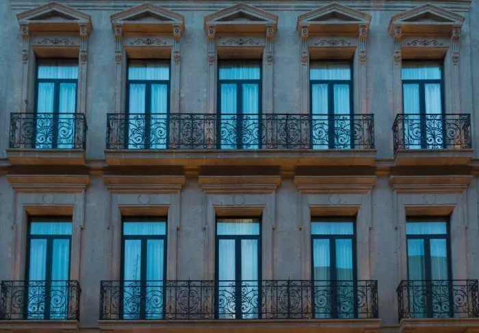 Hvis du bor i koloniale rom, har du også en liten balkong samt en peis i rommet.