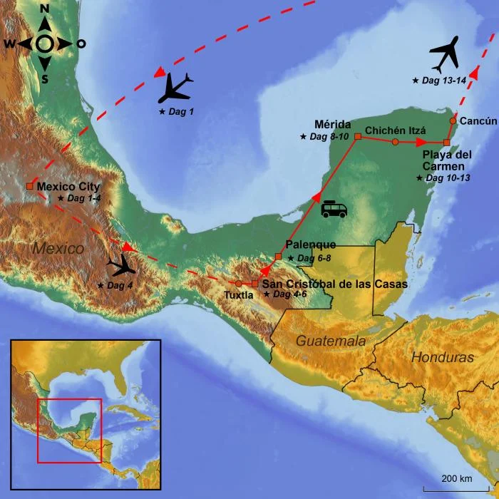 I dag er enda en dag med store opplevelser. Reisen fortsetter til Playa del Carmen ved den karibiske kysten, Mexicos berømte Riviera Maya, men før du når strandparadiset, skal du oppleve noen av Yucatán-halvøyas populære attraksjoner underveis; Mayaruinen Chichén Itzá og cenoten San Lorenzo Oxman.