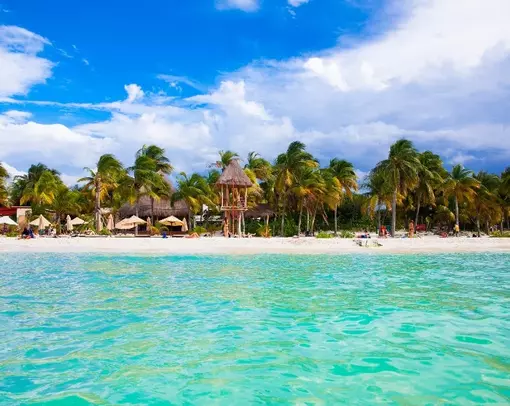 Deretter fortsetter du til strandbyen Playa del Carmen med den kilometerlange hvite sandstranden med palmer og krystallklart vann.