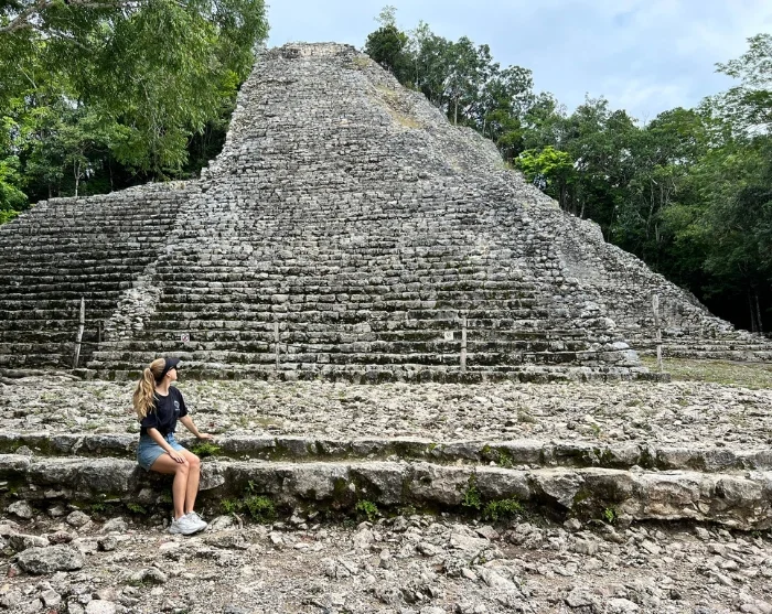 Første stopp er Cobá, som en gang var en av regionens største og mest sentrale mayabyer. Cobá-ruinene ligger skjult inne i jungelen, noe som gir stedet en eventyrlig og nesten hemmelighetsfull stemning – så her kan du virkelig finne frem din indre Indiana Jones. Ruinene er spredt over et stort område, forbundet av eldgamle stisystemer kalt sacbé. Du blir kjørt rundt i en sykkeltaxi langs svingete stier gjennom frodig vegetasjon, og får oppleve de mystiske templene og den imponerende Nohoch Mul-pyramiden. Med sine cirka 42 meter er dette den høyeste pyramiden på Yucatán-halvøya, og den rager majestetisk over tretoppene.