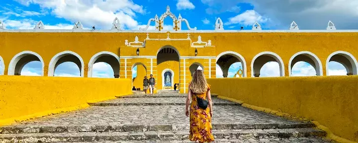 Izamal er en av Yucatáns mest sjarmerende kolonitidsbyer, med sine karakteristiske gule hus og rolige stemning. Her kan du besøke det imponerende klosteret San Antonio de Padua, som er bygget over en tidligere mayapyramide. Gå opp Kinich Kakmó-pyramiden for å nyte utsikten over byen, eller ta en spasertur gjennom de hyggelige gule gatene og se hvor du ender opp.
