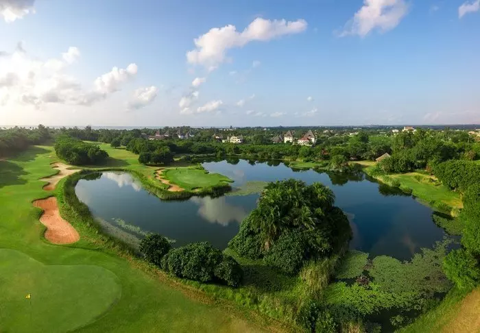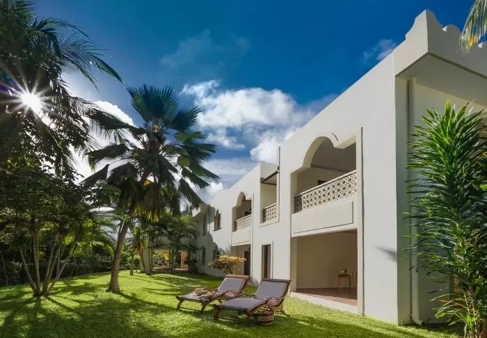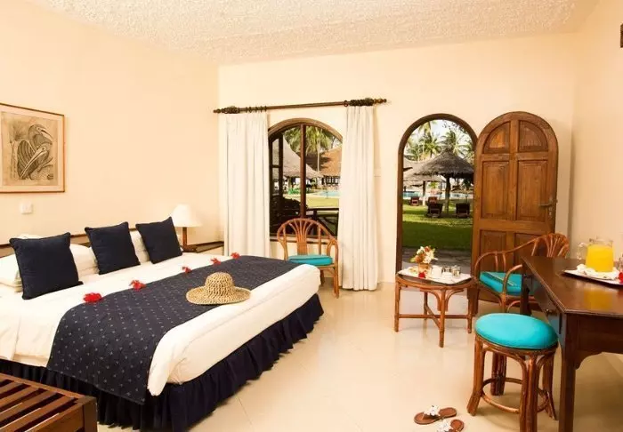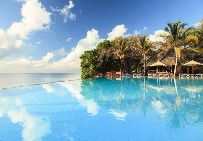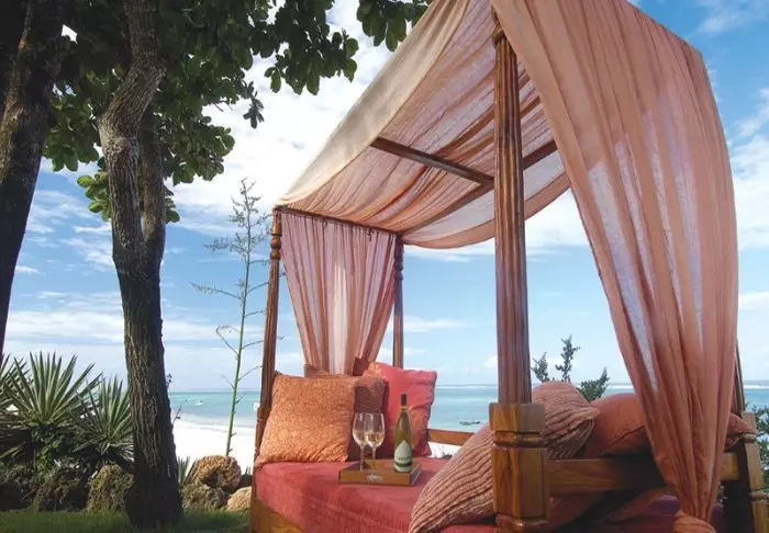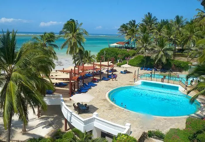 Denne resorten ligger ved en av verdens vakreste strender, kritthvite Diani Beach, og utsikten over Det indiske hav er helt fantastisk. Selv fra resortens 18-hulls golfbane er det utsikt til det turkisblå havet.