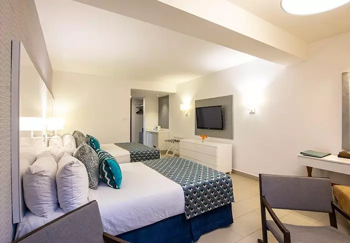 Resorten har 170 rom i forskjellige kategorier, alle med egen terrasse eller balkong. Alle rom har dessuten aircondition, Wi-Fi, te- og kaffefasiliteter, minibar, safe og flatskjerm-TV.