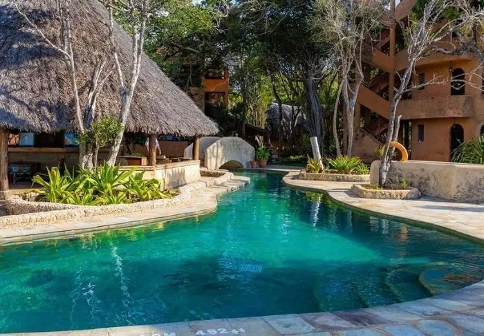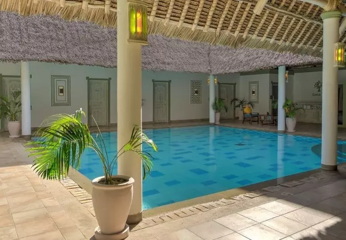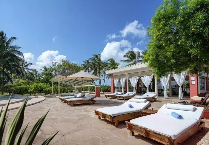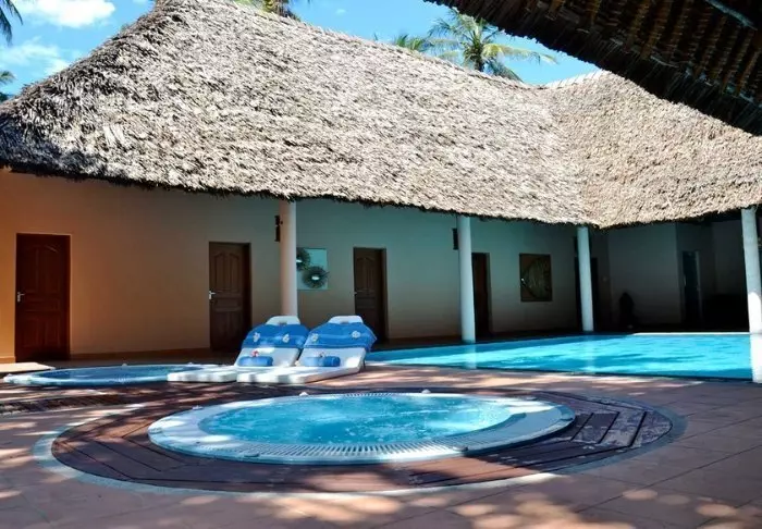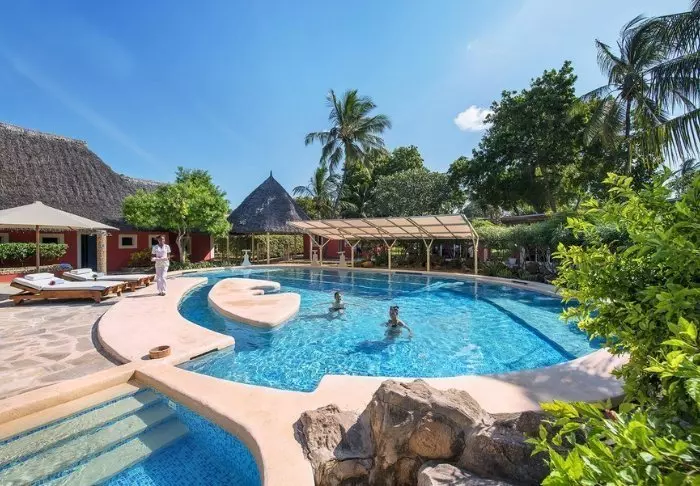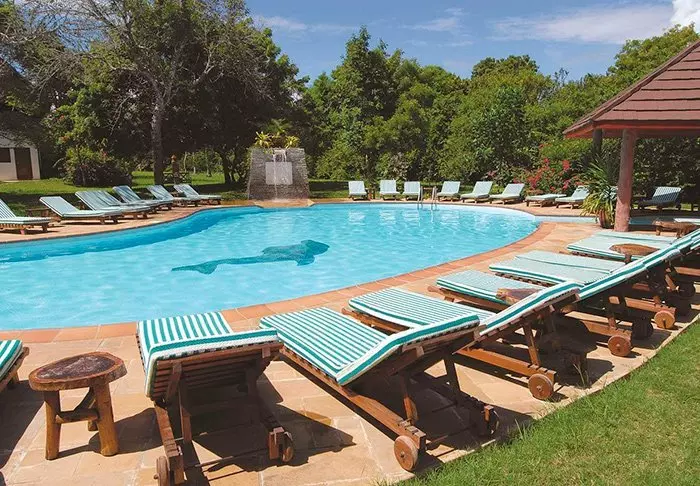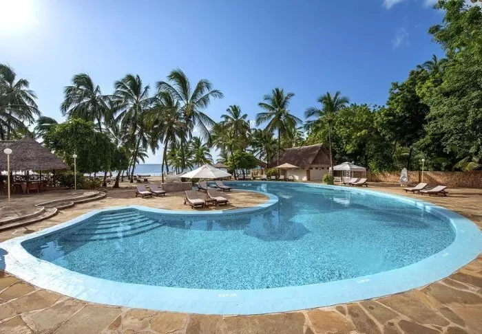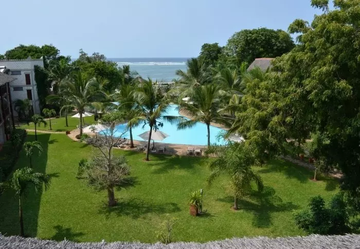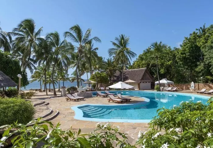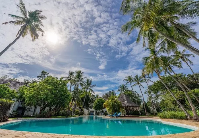 Hotellet kan skryte av å ha det som kanskje er det dypeste svømmebassenget i hele Kenya – 5 meter, og det betyr at det er et perfekt sted å lære å dykke. Solsengene er spredt ut over hele området, så du kan selv velge om du vil ligge på stranden, ved bassenget eller kanskje under en palme på den grønne gressplenen.
