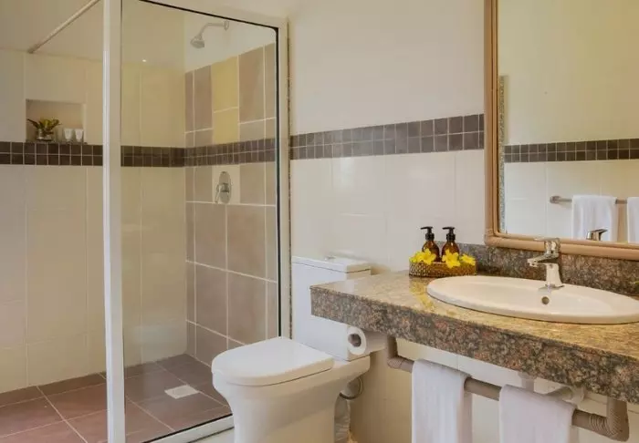 Resorten består av 165 rom, alle med egen balkong eller terrasse. Rommene ligger i hytter i naturskjønne omgivelser. Det er gratis Wi-Fi, minibar, te- og kaffefasiliteter og aircondition på alle rom.