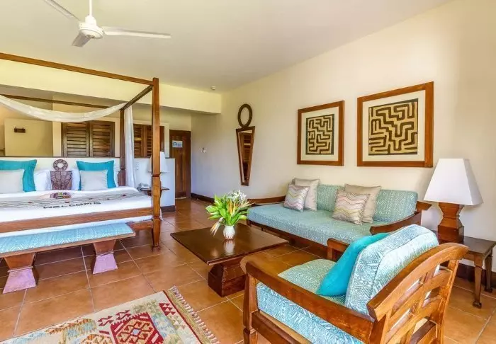Alle rom er individuelt innredet, inspirert av tradisjonell swahili-design. Alle rom har minibar, safe, Wi-Fi aircondition og myggnett over sengene.