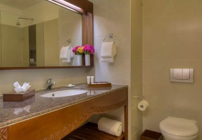 Alle rom har enten egen terrasse eller balkong med møbler, slik at du kan nyte utelivet. Rommene er romslige og har alle aircondition, minikjøleskap (som kan fylles med brus og lokale øl, hvis du spør i resepsjonen), sikkerhetsboks, hårføner, te- og kaffe fasiliteter, samt Wi-Fi. Det er også Wi-Fi i fellesområdene.
