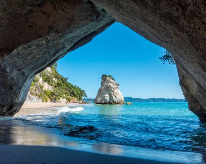 Etter lunsj (for egen regning) fortsetter turen til den berømte klippeformasjonen Cathedral Cove, som er et av New Zealands mest ikoniske naturfenomener.