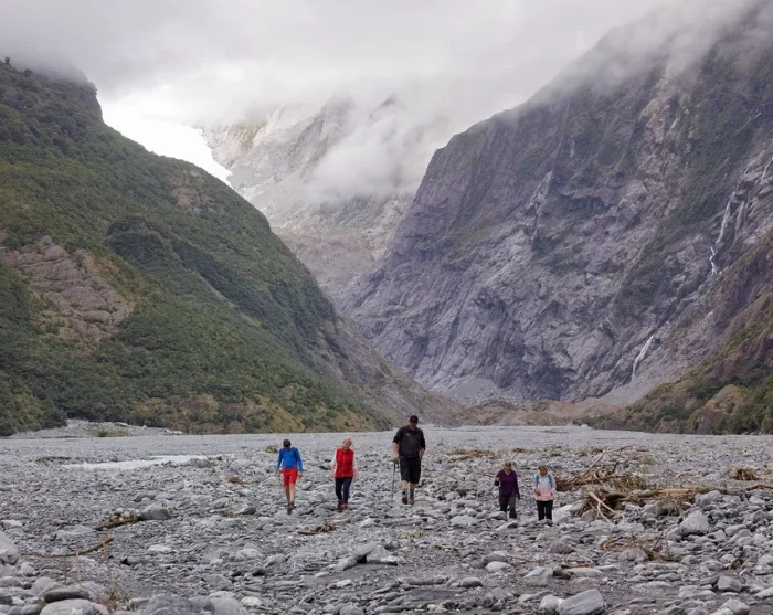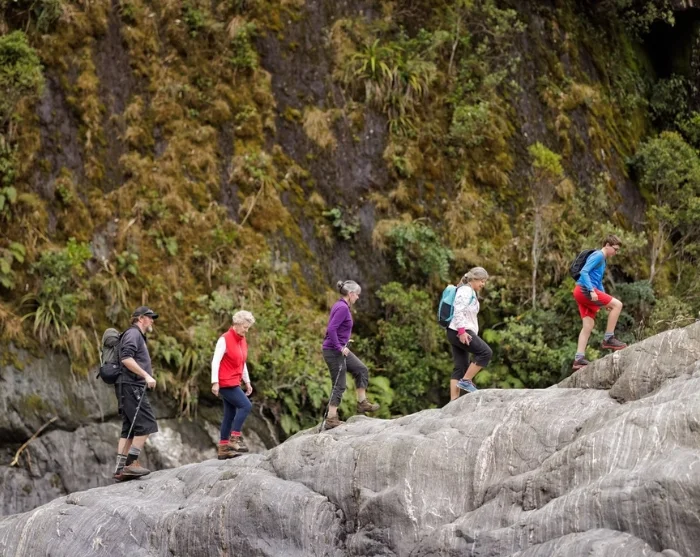 I ditt eget tempo vandrer du forbi vakre isbrelver og små bekker, gjennom tett podocarp-regnskog, og forbi naturens skjulte skatter som ville sopper, sjeldne snegler og en mengde orkidéarter. Nyt lyden av brusende fossefall og fuglesang fra de mange artene, og hold utkikk etter gems eller tahr i de snødekte fjellsidene.