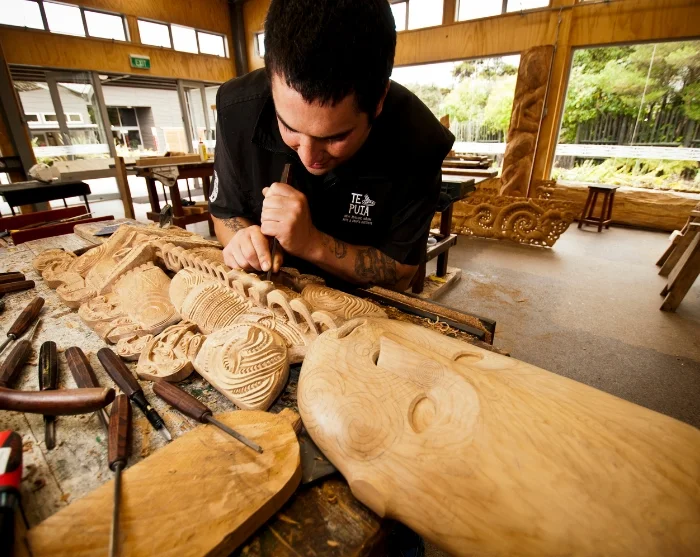 På Te Puia finner du også New Zealand Māori Arts and Crafts Institute, der du får se veving og treskjæringskunst utført etter gamle tradisjoner. Du får dessuten mulighet til å overvære en tradisjonell maoriopptreden.
