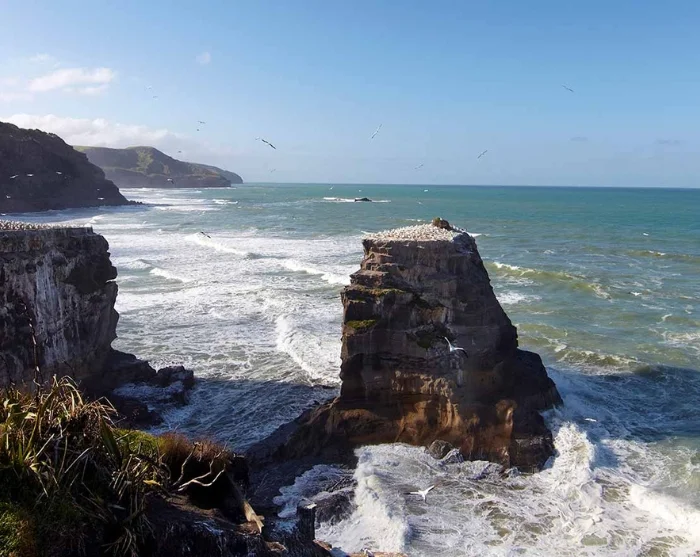 Turen avsluttes ved Det tasmanske hav sent på ettermiddagen ved Muriwai-stranden. Her har du i hekketiden (august til mars) mulighet til å se australske suler (Morus serrator), en av verdens største sjøfugler, i deres naturlige omgivelser. Du kommer tett på en av verdens få fastlandskolonier av suler, som ligger dramatisk plassert på klippetopper med utsikt over Det tasmanske hav. Her får du på avstand et unikt innblikk i fuglenes adferd uten å forstyrre deres miljø. Utsikten strekker seg kilometer etter kilometer langs Muriwais ville, svarte sandstrand.