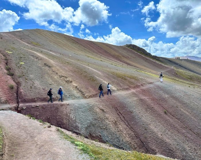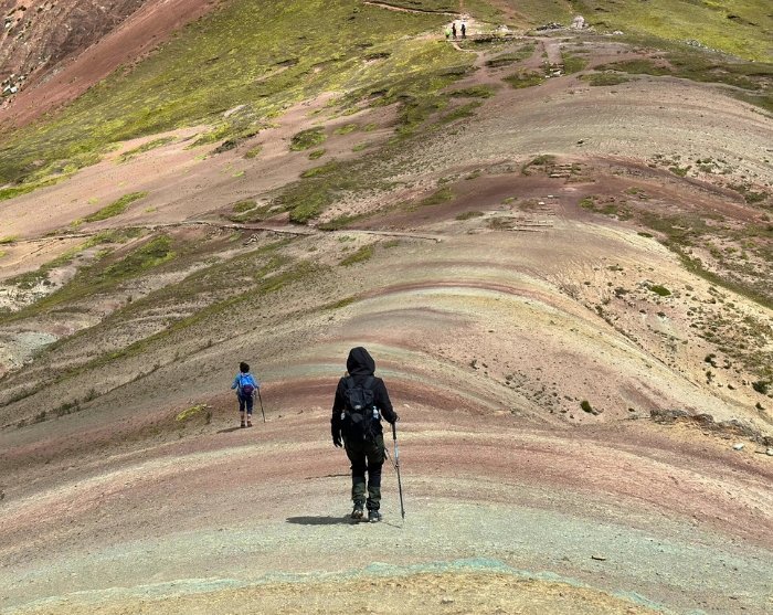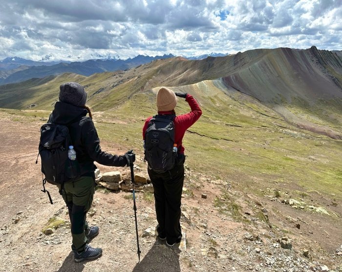 Derfor har vi valgt å besøke Palccoyo Rainbow Mountain på denne turen, for dette er like vakkert og imponerende som Vinicunca, men har ikke så mange besøkende og i tillegg hele tre fargerike regnbuefjell. Det er en forholdsvis enkel og kort vandring til utsiktspunktet ved Palccoyo.