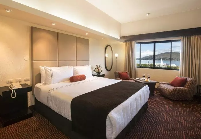 Hotellet har 62 rom, som alle har TV, klimaanlegg, telefon, Wi-Fi, safe og bad med hårtørker. Fra rommene med lake view har du flott panoramautsikt over sjøen som er omgitt av fjell. Helt magisk!