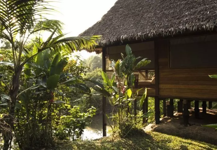 Her er det bare 25 vakkert innredede bungalower – alle bygget i tre og på pæler – så de ikke blir oversvømmet når det kommer kraftige tropiske regnskyll. Hyttene har komfortable senger med myggnett, takvifte og eget bad med varmt vann, badekåpe og toalettartikler.