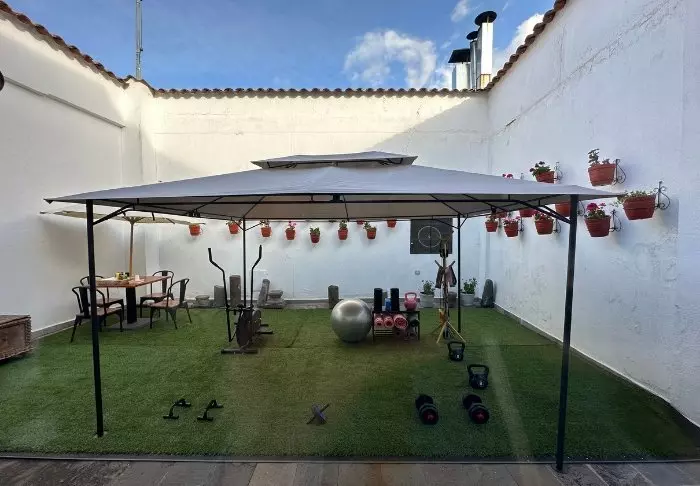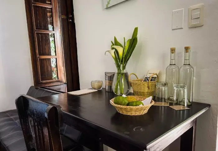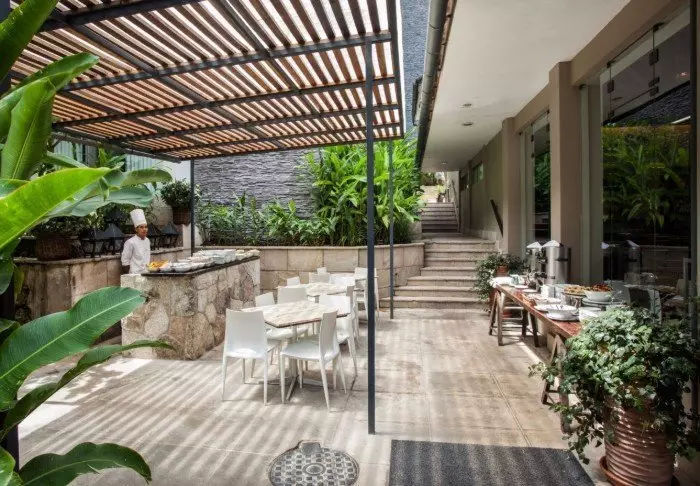 I denne vakkert bevarte kolonibygningen finner du syv dekorative gårdsplasser, hver dedikert til forskjellige formål. For eksempel er det en for utendørs servering, som tilhører restauranten, en annen for trening/yoga, slik at du kan holde deg aktiv mens du er på ferie, og en tredje som fungerer som et loungeområde for å slappe av og sosialisere.