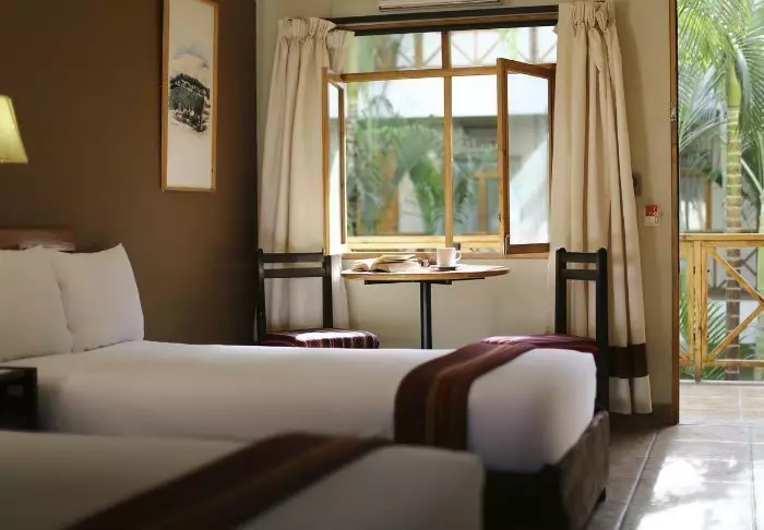 Hotellet har bare 25 rom, og de er hyggelig innredet med mørke tremøbler. Alle rom har eget toalett/bad, Wi-Fi, safe og radiator, for det kan bli litt kaldt om natten.