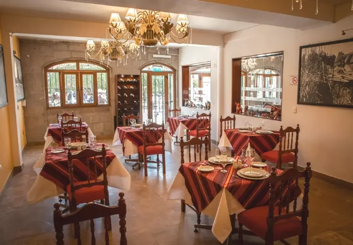 I forlengelsen av kafeen ligger El Albergue Restaurant, der din inkluderte frokost blir servert. Restauranten serverer også lunsj og middag. Menyen inneholder retter laget av friske økologiske ingredienser fra området, og ikke minst fra stedets egen gård (som f.eks. mais, poteter og quinoa), og her kan du glede deg til spennende peruanske smaksopplevelser.