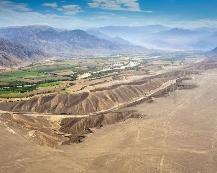 Den lille byen Nazca ligger som en frodig grønn oase omgitt av ørken og høye sanddyner. Byen ble satt på det internasjonale kartet pga. sine mystiske tegninger av dyr og geometriske figurer i ørkensanden. Figurene har vært der i mer enn 2000 år, og den minimale nedbøren i området forhindrer at de viskes ut av vær og vind.