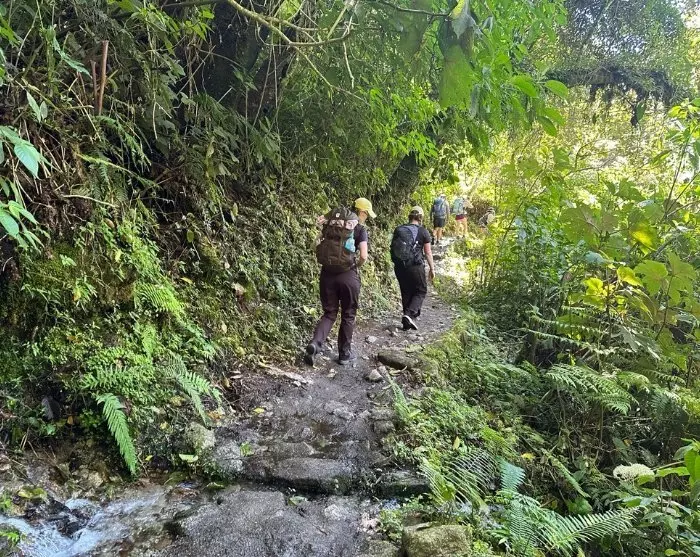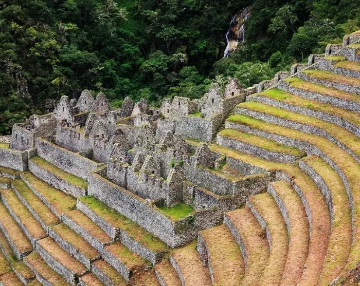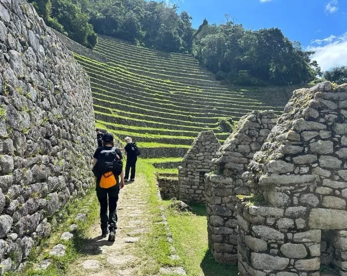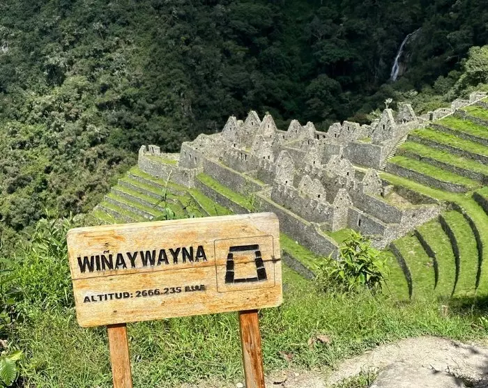 Deretter starter oppstigningen til Wiñay Wayna i 2 650 meters høyde. Dette er noen av de største og best bevarte ruinene langs inkastien. Ruinene ligger på en grønn fjellside og består av gamle hus, tårn og imponerende landbruksterrasser som klatrer oppover fjellet. Det storslåtte anlegget er omgitt av den frodige, mørkegrønne tåkeskogen og har vakker utsikt til fjellene og Urubamba-elven nede i dalen.