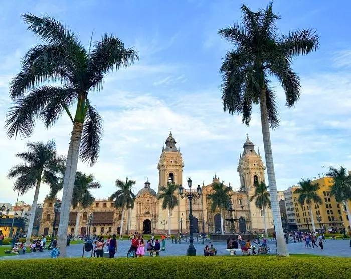 Du blir hentet på hotellet, og turen går først går til byens livlige sentrale plass, Plaza Mayor, som er smykket med blomster i røde, hvite og gule farger, høye palmer og et springvann med byens skytsengel på toppen. Den historiske plassen er omgitt av flotte kolonitidsbygninger, blant annet Regjeringpalasset, Erkebispens palass og Limas imponerende katedral, der Pizarros jordiske rester hviler.