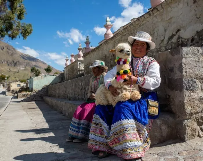 Etter denne inntrykkssterke naturopplevelsen skal du gå en kort tur i dalen, og der kan du se de gamle landbruksterrassene som har vært i bruk i flere århundre. Det er også gode muligheter til å kjøpe fargerike suvenirer. Herefter kjører du tilbake til Chivay for å spise lunsj før du setter deg på bussen til Puno.