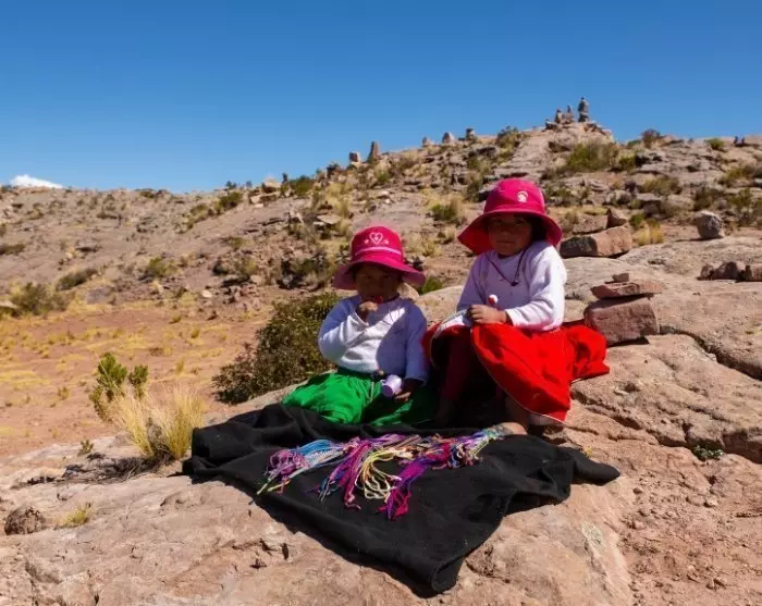 Heretter seiler du videre til den fredelige øya Taquile. Den er spesielt kjent for sitt fargerike kunsthåndverk og sine “strikkende menn”. Her på øya er det nemlig mennene som strikker, og det er de veldig flinke til! Mønsteret på en manns strikkelue, en chullo, viser både kreativiteten og den sivile statusen hans. Kvinnene spinner garnet og vever. Det er kvinnene som vever de vakre beltene til mennenes klesdrakter.