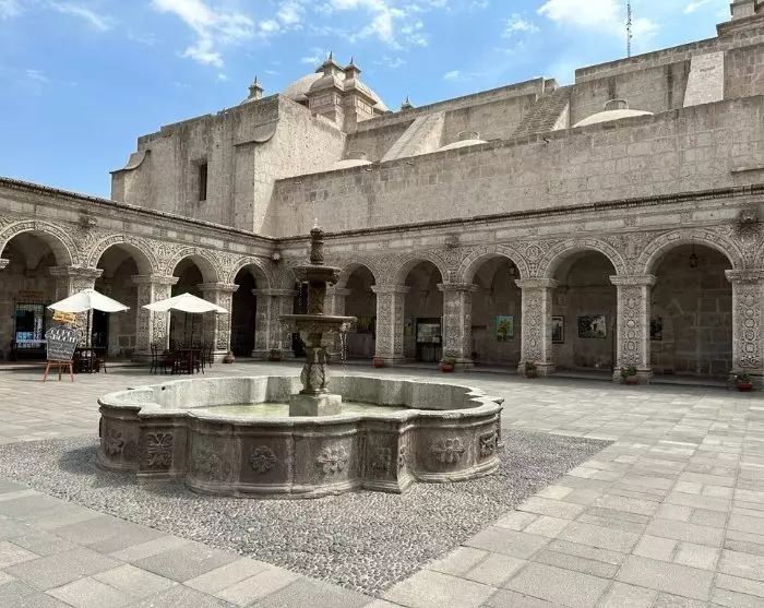 Deretter venter Arequipas største attraksjon, Santa Catalina-klosteret, der det en gang bodde mer enn 400 nonner. Santa Catalina ble grunnlagt i 1580 av den rike enken Maria de Guzmán. Klosteret var primært for overklassen, og i kolonitiden var det vanlig at familiens nest eldste barn skulle tjene kirken. Jentene ble brakt til klosteret allerede i tre-årsalderen og kom aldri utenfor murene igjen.