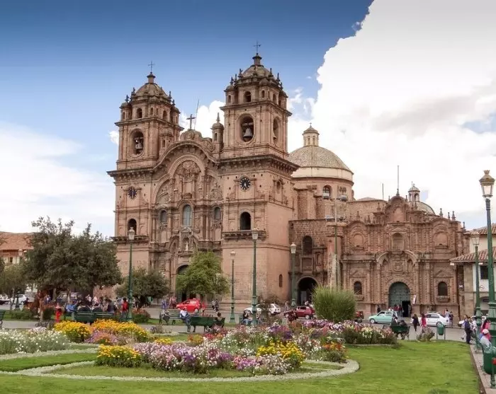 Det er også her du finner Cuscos katedral. Den ble bygget med stein fra inkaruinene Sacsayhuamán over inkapalasset Viracochas i kolonitiden. Katedralen har derfor en flott blanding av spansk renessansearkitektur og inkaenes mesterlige steinarbeider. Gaten ved siden av katedralen fører til Santo Domingo-kirken, som er bygget over det som en gang var et av inkarikets viktigste templer, Koricancha. Det tidligere storslåtte soltempelet utgjør kirkens fundament og er bygget uten hjelp av mørtel. Her passer hver enkelt stein perfekt.