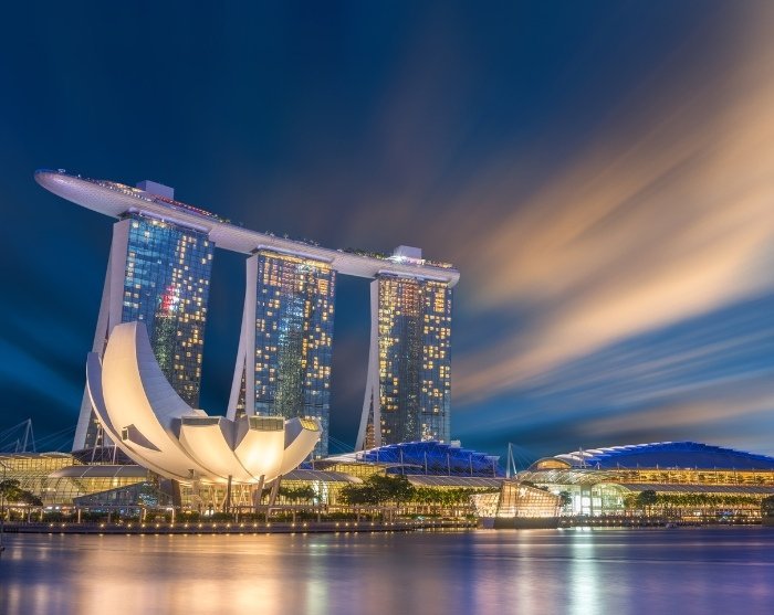 Kvelden avsluttes ved vannkanten, der du kan beundre det fascinerende lys- og vannshowet på Marina Bay Sands – en uforglemmelig opplevelse som viser frem Singapores teknologiske innovasjon og kreativitet.
