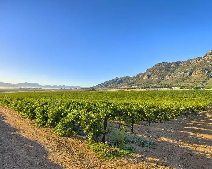 I dag skal du smake vin på forskjellige vingårder i flere av Vinlandets områder. I Stellenbosch blir det tid til en tur til fots i den historiske delen av byen, og det blir også omvisning på en vingård. I Franschhoek venter en tur med den berømte “Wine Tram”, et tog som kjører mellom vingårdene i området – en morsom og meget sjarmerende opplevelse. Du kjører gjennom det vakre fjellpasset Helshoogte før du sent på dagen sjekker inn på hotellet ditt i Vinlandet.