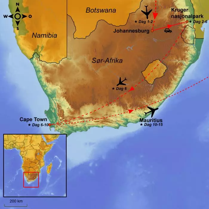 Visste du at man kan se løver og pingviner på den samme reisen? Drømmer du om å se The Big 5 – og vise barna dine hvor dyrenes konge lever fritt? Vil du utforske Sør-Afrikas vakreste storby? Høres hvite sandstrender med palmer og asurblått hav ut som et ekte paradis? Vil du ha mulighet til å sette ditt eget preg på reisen din uten å måtte planlegge alt selv? Da er dette reisen for deg!