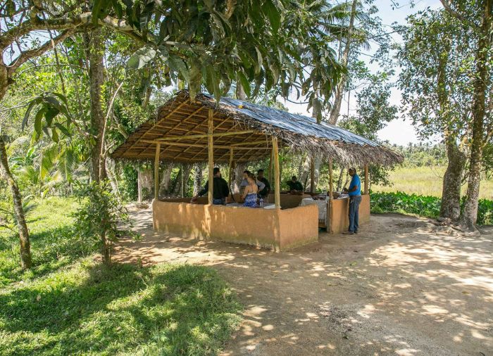 Båten legger til kai ved den lille sjarmerende landsbyen Wakwella. Her besøker du det lokale kokosskall-verkstedet og ser hvordan kokosskall kan brukes til å lage forskjellige kjøkkenredskaper.