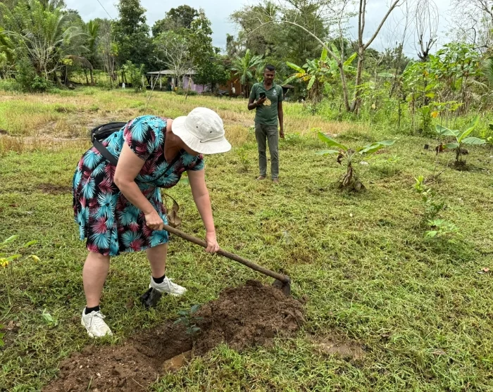 Du blir ønsket velkommen av en lokal vert og blir servert ferskpresset juice før en jeep tar deg til landsbyens hjerte. Her får du høre om prosjektet som oppsto etter forskning som viste at de srilankanske elefantene verken liker smaken eller lukten av appelsiner. Ved å plante appelsintrær rundt boliger og marker kan landsbyboerne skjule duften av avlinger og dermed holde elefantene unna. En skånsom løsning som i dag både beskytter liv og avlinger, samtidig som den styrker biodiversiteten og den lokale økonomien.