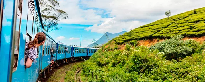 Ved ankomst til Nanu Oya stiger du ombord på det klassiske toget, som sakte snegler seg frem gjennom Sri Lankas grønne høylandslandskap. Sett deg godt til rette og nyt de medbrakte snacksene mens toget tøffer gjennom svingene og åpenbarer en utsikt som langsomt folder seg ut med lysegrønne teplantasjer, tåkedekte fjelltopper og små landsbyer hvor barna gladelig smiler og vinker.