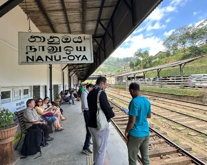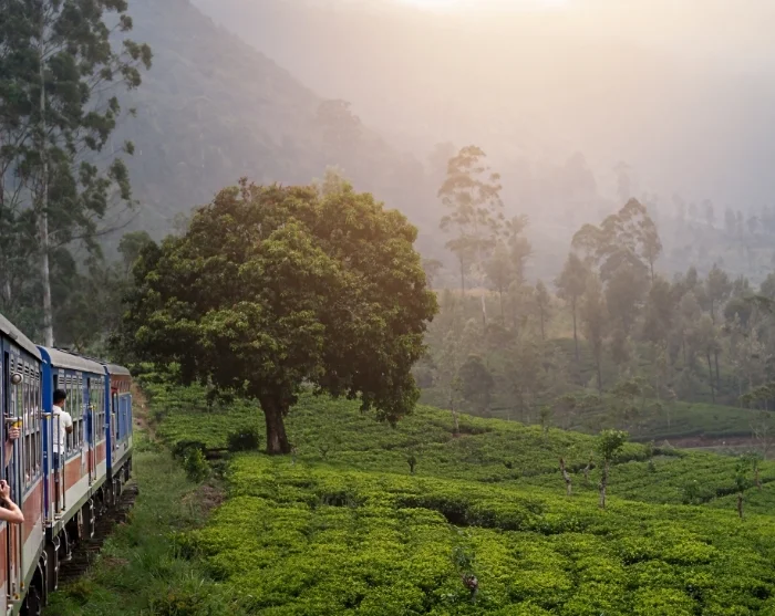 Her går du om bord i det klassiske toget, som snart snirkler seg gjennom Sri Lankas grønne høyland. Sett deg godt til rette og nyt snacksene du har med deg, mens toget tøffer gjennom myke svinger og byr på en utsikt som gradvis åpner seg mot lysegrønne teplantasjer, tåkebelagte fjelltopper og små landsbyer, der barna smilende hilser og vinket.