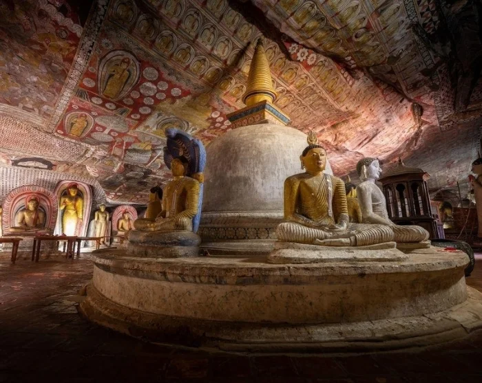 Etter omtrent 2,5 timers kjøring venter et av Sri Lankas mest imponerende og hellige steder: Grottetempelet i Dambulla. Tempelet ble opprinnelig grunnlagt av Kong Valagamba i det første århundre f.Kr., og er oppført på UNESCOs verdensarvliste på grunn av sin uerstattelige historiske og kulturelle verdi.