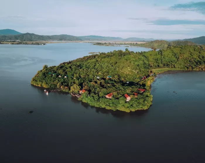 Ved bredden av den speilblanke innsjøen Lak Lake i Vietnam ligger Lak Tented Camp. Omgitt av frodige grønne fjell, tett skog og tradisjonelle landsbyer, er campen skapt med fokus på ansvarlig turisme og bærekraft.