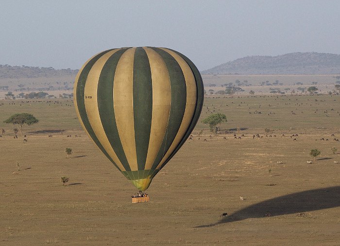 Vi svever lydløst hen over Serengetis berømte sletter og opplever dyrelivet og det idylliske landskapet.Etter landing står bordet dekket med frokost som tatt ut av Karen Blixens “Out of Africa”, inkludert champagne. I tillegg får man utlevert et sertifikat etter flygningen, som bevis på at man har deltatt i denne unike opplevelsen.