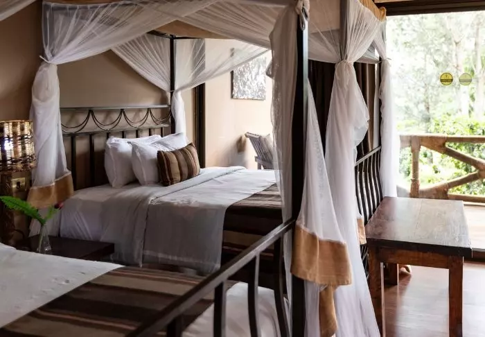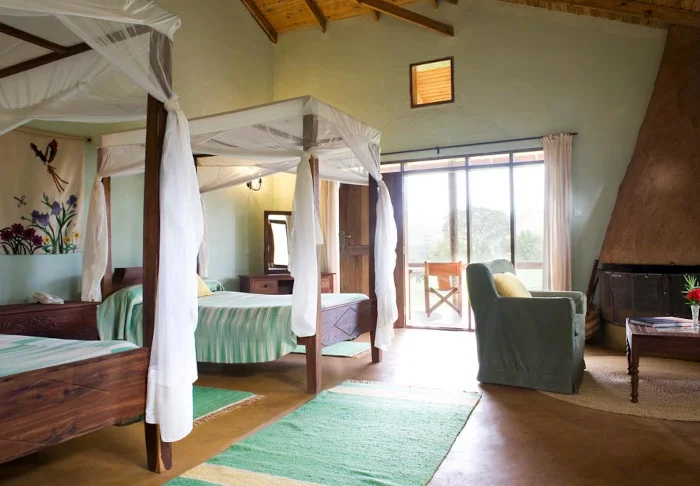 Alle hyttene er sjarmerende innredet i masaistil med fargerike, håndlagde perler hengende ned fra taket, flotte kurver på veggene og sengetepper i de vakreste masaifarger. Hyttene finnes i forskjellige størrelser, og det er både plass til par som vil ha sin egen hytte, eller familier som gjerne vil sove i samme hytte. Alle hyttene vender mot Kilimanjaro, slik at du kan nyte soloppgangen tidlig om morgenen.